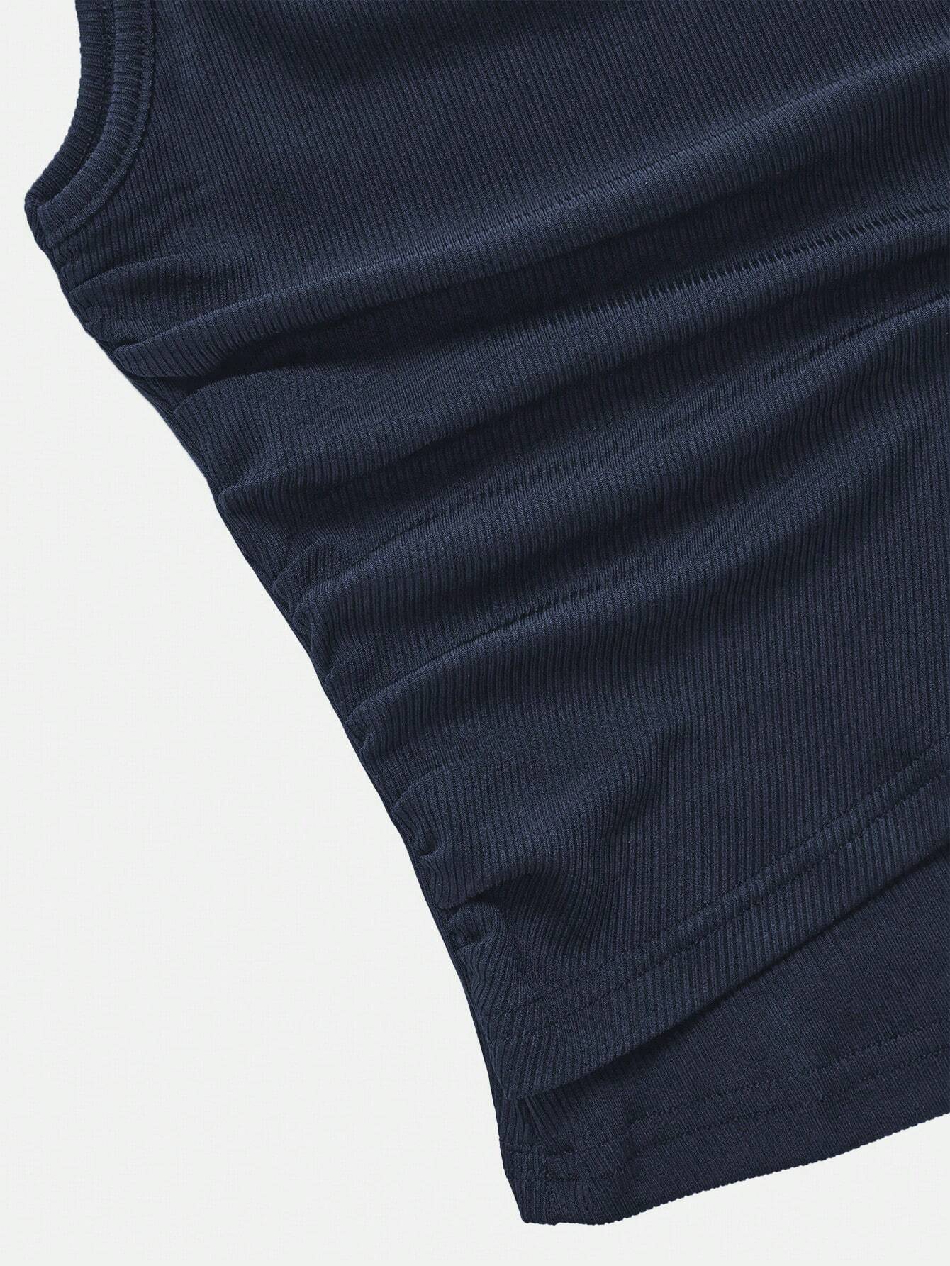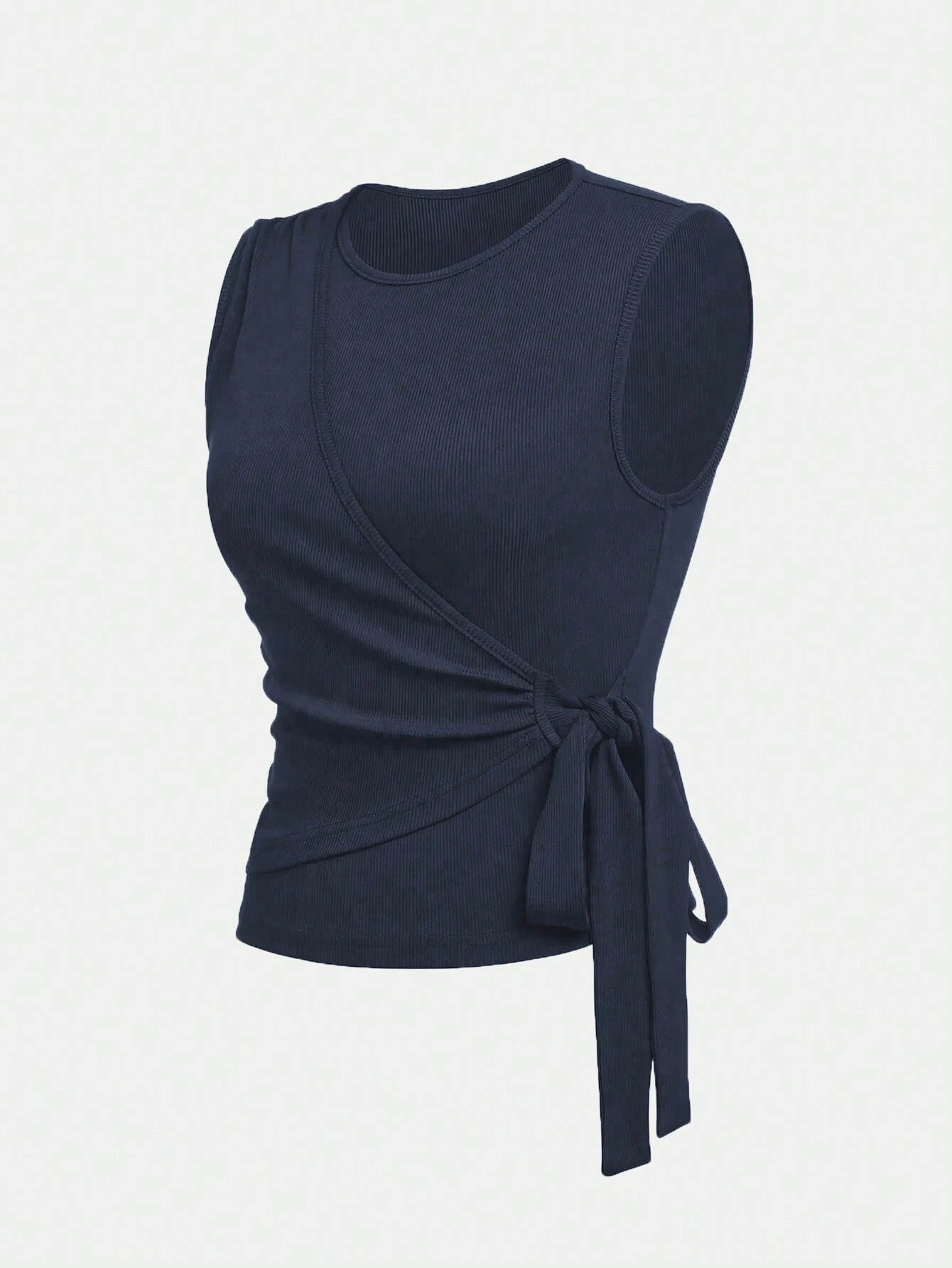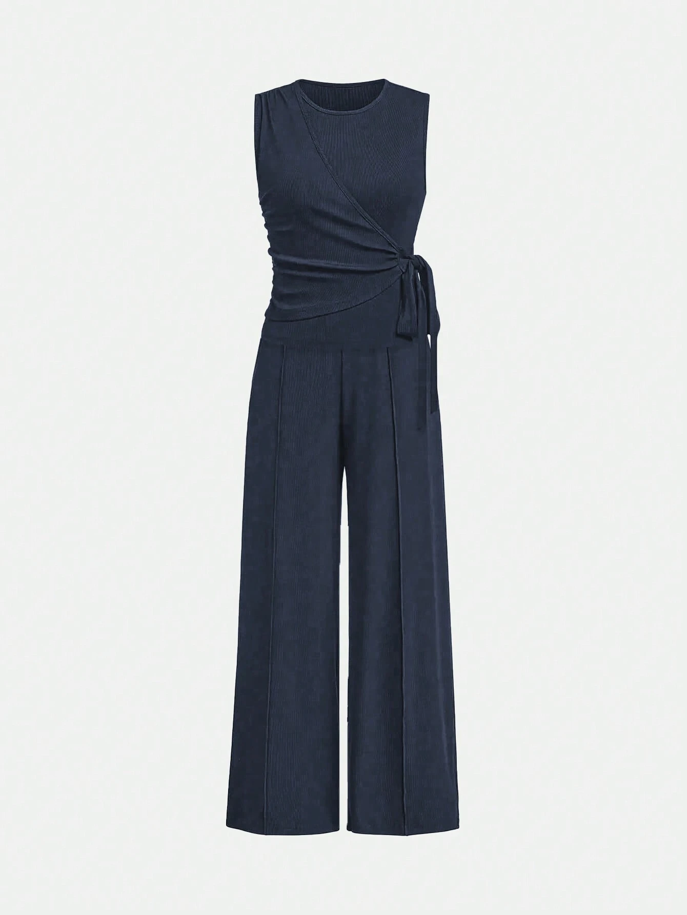 2pcs Set Women Solid Color Side Tie Tank Top And Wide Leg Pants Suit